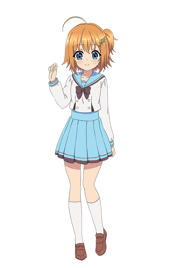 A first year student who formerly attended the main school of Marehoshi Junior High School, but for some reasons she transferred into the Takao branch. She is not very good at going in front of people. Despite this, with her outstanding singing and dancing talents, she becomes a completely different person once she comes up on stage. She is currently living with her aunt.